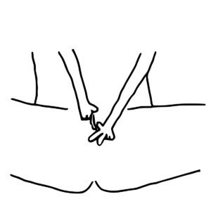 Spreize den Zeige- und Mittelfinger auseinander und “umklammere” die Schamlippen. Bewege nun die Finger nach Belieben. So kannst du die Klitoris stimulieren, ohne sie jedoch direkt zu berühren. Mit unterschiedlich starkem Druck kannst du die unterschiedliche Gefühlsintensitäten erzeugen.