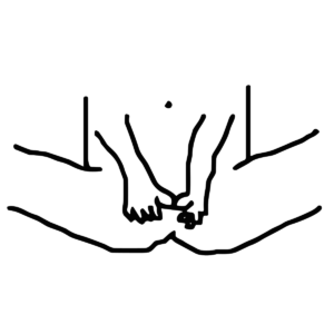 Variation: Man kann noch die Daumen hinzu nehmen oder noch mehr Finger und die Schamlippen ganz gezielt massieren.