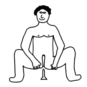 Bei dieser Stellung geht es darum, Dinge zu finden, die den vaginalen Geschlechtsverkehr bestmöglich simulieren können. Ausprobieren kannst du viele verschiedene Sachen (z.B. eine Klopapierrolle, eine zurecht geschnittene Melone oder eine Gurke, aus dem der Inhalt so rausgedrückt ist, dass der Penis Platz findet). Den Penis im gewählten Gegenstand geschlechtsverkehr-ähnlich vor und zurück bewegen.