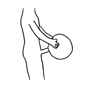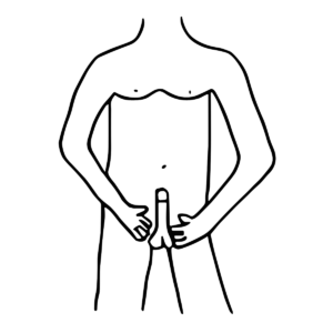 Ähnlich wie die “Standardstellung”. Der Unterschied ist, dass der Penis nicht umgriffen wird, sondern die Hand wird auf ihn drauf gelegt. Der Penis liegt auf dem Bauch auf. Dann die Hand hoch und runter auf voller Penis-Länge reiben. Für diese Stellung notwendig: Mit Gleitgel den Penis und den Bauch schlüpfrig machen.