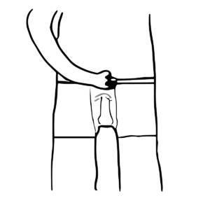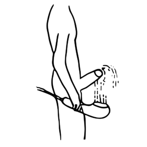 Dies ist eine Variante für die eher geduldigen Onanisten. Der Penis bleibt in der Unterhose, Boxershorts oder sogar in der Jeans. Die Beule reiben, bis es zum Orgasmus kommt. Dies kann sehr intensive Gefühle hervorrufen. Wenn die Hose nicht vollgespritzt werden soll, hier ein Tipp bzw. Alternative: Auf den steifen Penis ein Kondom überziehen, dann wird’s nicht so schmutzig.